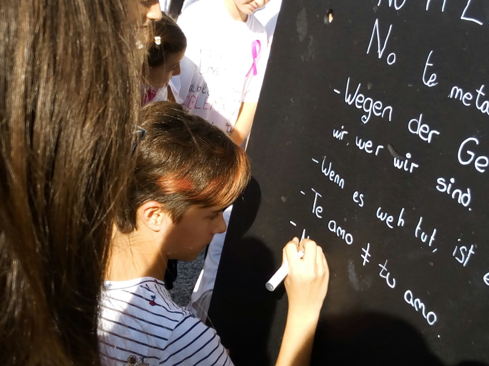 Finalmente, nuestros alumnos participaron y colaboraron con una actividad organizada por el ayuntamiento de Torrox en la que se decoraron camisetas con frases y escribieron en todos los idiomas lemas contra la violencia de género.